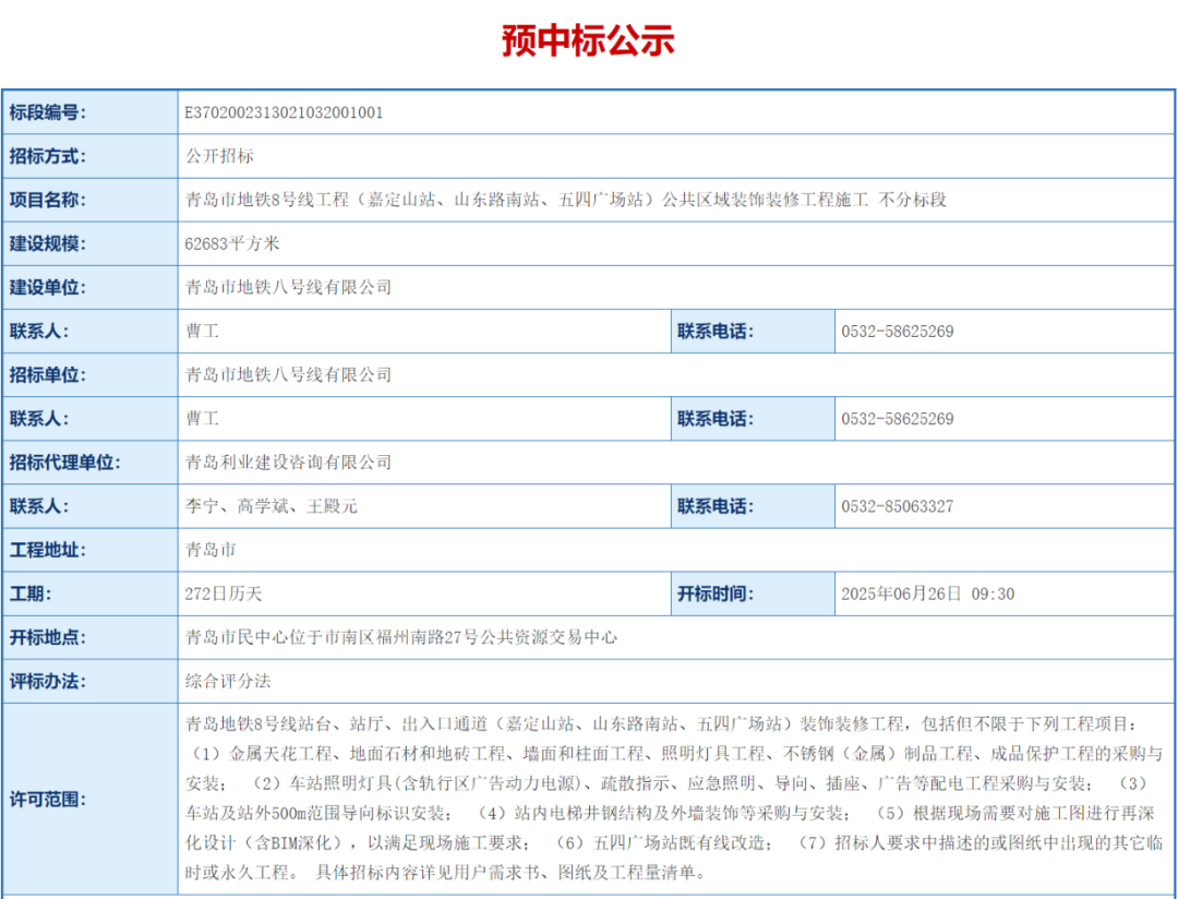 中铁五局武汉地铁12号线道路恢复工程中标候选人公示